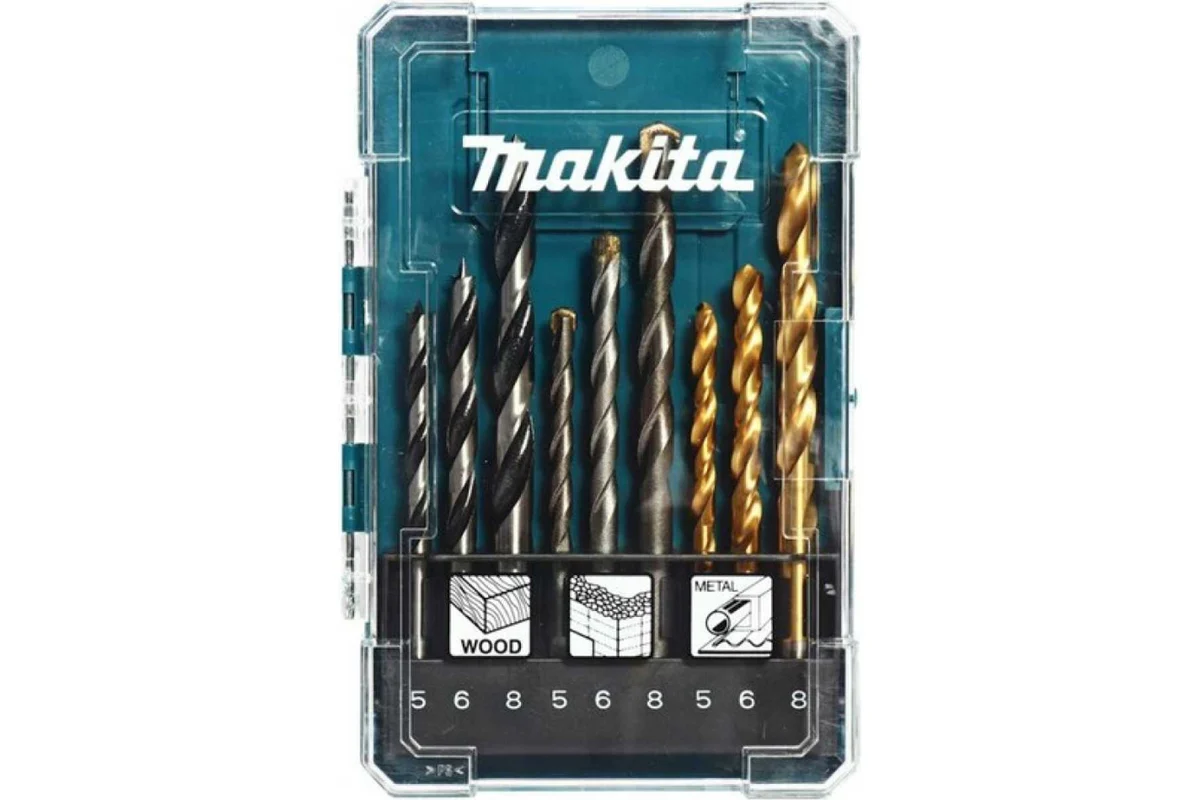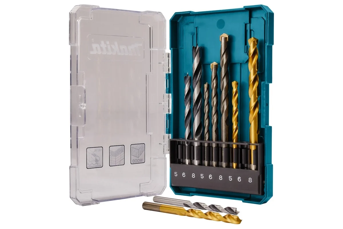 Набор сверл Makita применяется в качестве насадок для шуруповертов, дрелей и других инструментов с патронами соответствующего размера. В комплекте присутствует три вида: для работы с деревом, металлом и бетоном. Каждый вид представлен тремя типоразмерами — 5, 6 и 8 мм. У сверл винтовая форма, что обеспечивает высокую скорость работы. Совместимы с электроинструментами с разной скоростью работы и мощностью. Благодаря своей производительности применяются для высверливания сквозных или глухих отверстий. Модели из комплекта могут использоваться в бытовом строительстве или в профессиональной деятельности.